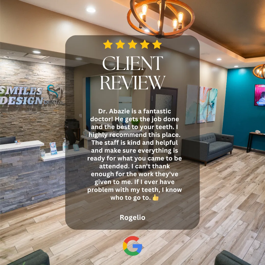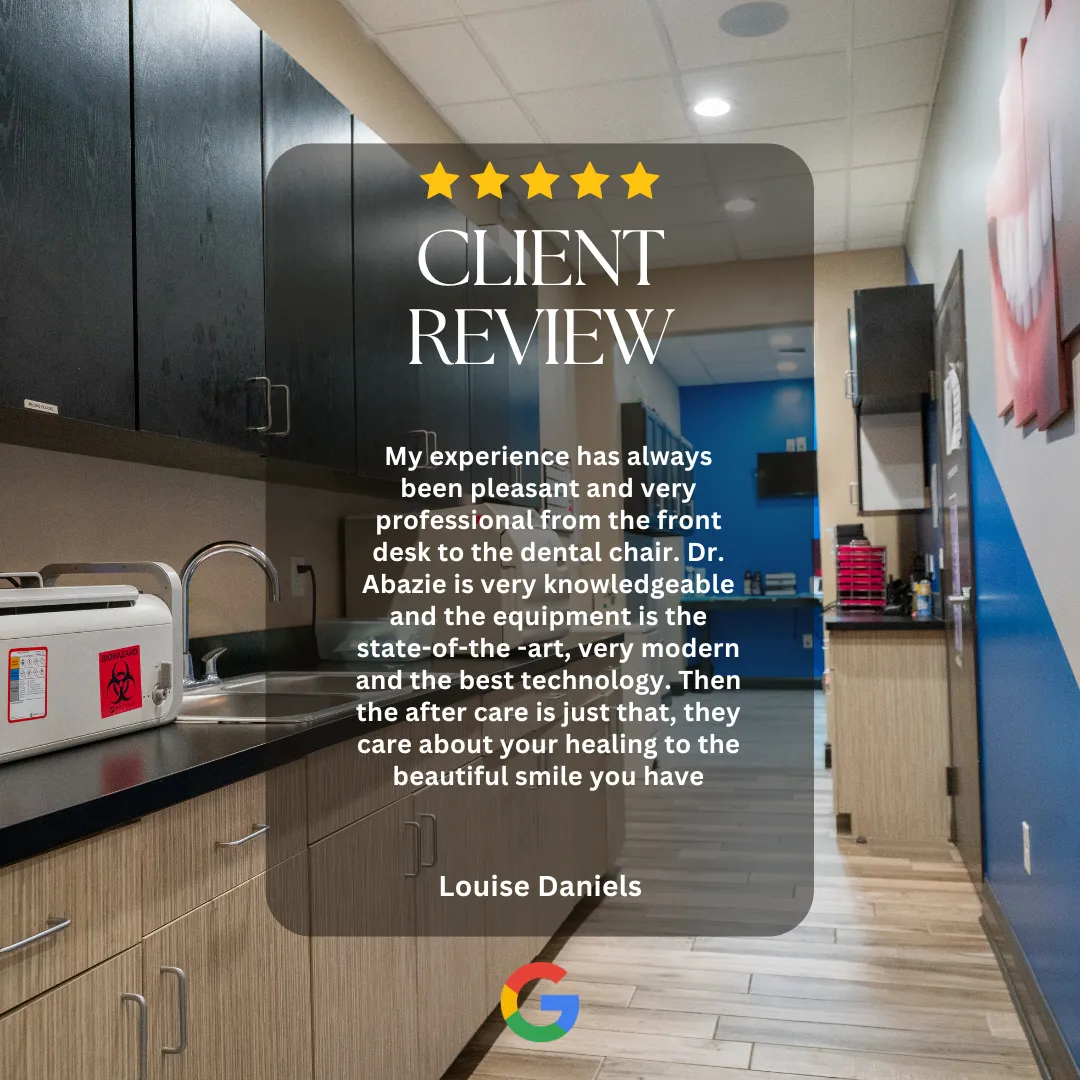 Dr. Abazie is a hospital-trained dentist with more than 20 years of experience in cosmetic dentistry. He has restored THOUSANDS of smiles! Dr. Abazie relocated his private practice to Coppell, Texas, where he will be closer to his family and will continue to serve DFW area and the community he loves so much. He is so proud of this new office and feels it is his biggest accomplishment thus far. The new office is set up with the most up-to-date technology that allows for a one-visit crown. He is a trusted doctor with astonishing professional skills who has been treating patients with all forms of dental issues. He is fun, warm and caring.